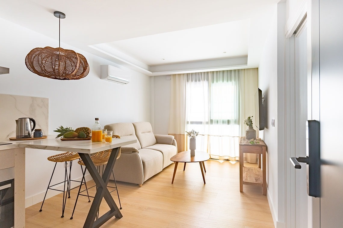 A modern, functional apartment with a coastal soul, designed to make you feel at home… by the sea.